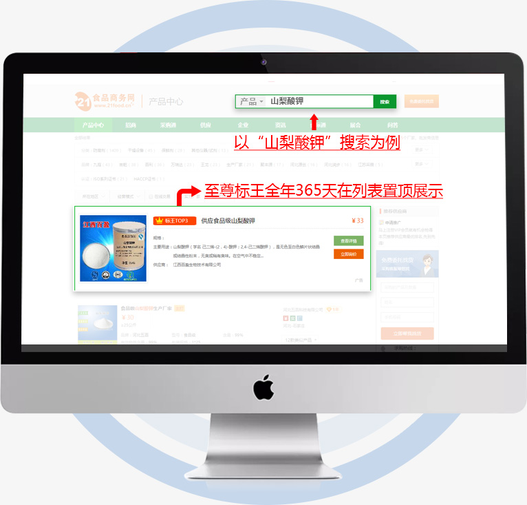 如購買關鍵詞,用戶通過關鍵詞搜索時,標王產品即置頂出現,只能匹配,絕對超值。