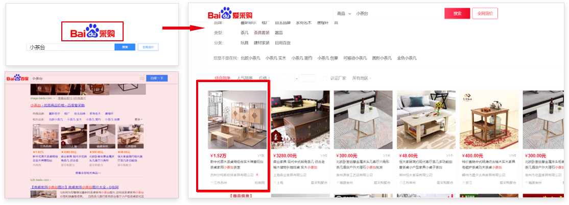 百度采購-流量精準(zhǔn)區(qū)別于百度大搜(www.baidu.com)內(nèi)容豐富,百度采購(b2b.baidu.com)通過卡片入口和采購搜索進(jìn)入,